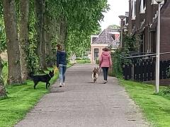* Onze herder reageerde altijd vrij heftig op andere honden als we die tijdens de wandeling voorbij kwamen. Daarom zochten we meestal rustige paadjes uit. Toen Yvonne met de cursus sociale wandeling kwam, was ik dan ook meteen enthousiast. Dat was precies iets voor ons. Tijdens de cursus werd het voor de hond stap voor stap opgebouwd, de afstand tussen de honden werd steeds kleiner gemaakt. Intussen kregen we tips hoe we konden voorkomen dat de honden uit zouden vallen. Het belangrijkste is eigenlijk, dat je goed naar je eigen hond kijkt om eventuele stress-signalen snel te herkennen en zo te voorkomen dat de hond zijn grens over gaat.